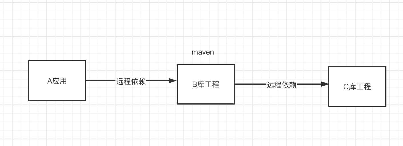我现在创建了一个应用A, 一个库工程 B , B 远程依赖了库工程C ,A远程依赖B工程. B 是通过Maven 发布成远程依赖库. B 作为一个通用的库工程,发布到了Maven上,就可以比较简单的被各个项目引入.