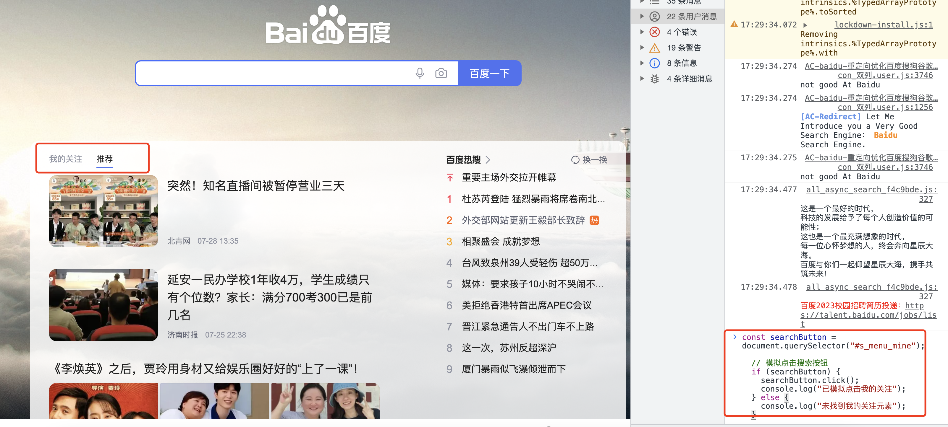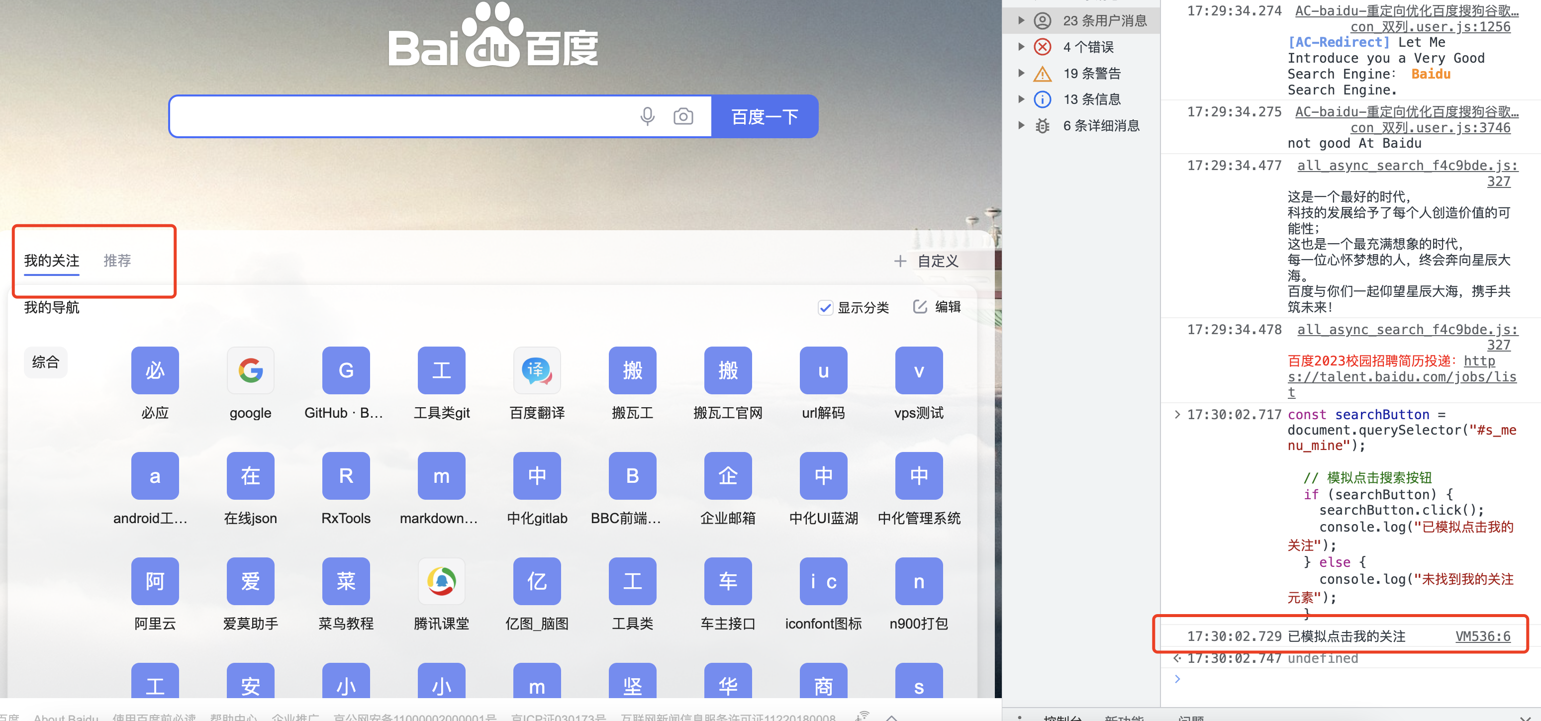 暴力猴插件开发简明教程->百度首页默认设置为我的关注